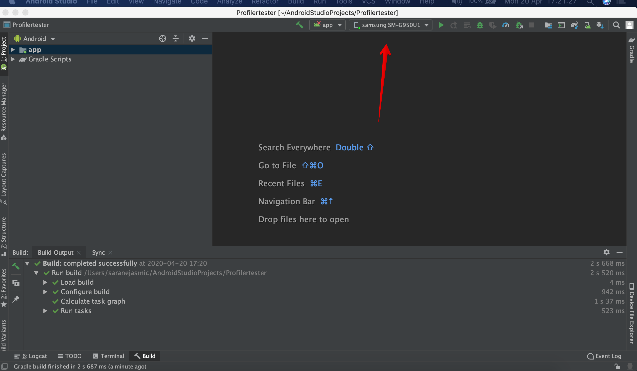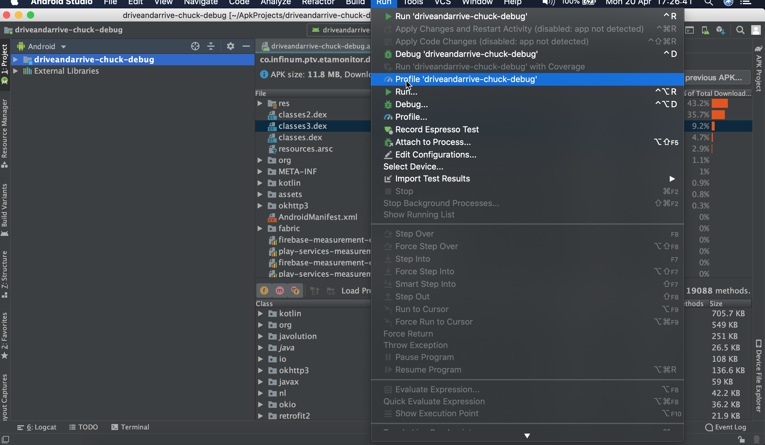 7. Now you need to set up Profiler by going to File > Profile or debug APK > Select APK File (choose debug APK file you want to profile) > click OK.