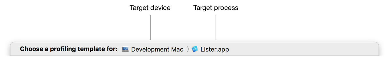 3. In the profiling template selection dialog that appears, select a target device and find your app in the Running Applications list.